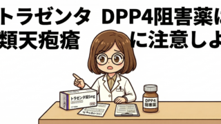 おくすり小ネタ漫画 トラゼンタ錠 DPP4阻害薬では類天疱瘡に注意!