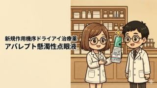 はじめに今回は、2026年4月に発売されたドライアイ治療薬の期待の星、アバレプト懸濁性点眼液0.3%をご紹介します。基本情報禁忌:本剤の成分に対し過敏症の既往歴のある患者効能効果:ドライアイ用法用量:通常、1回1滴、1日4回点眼する。作用機...