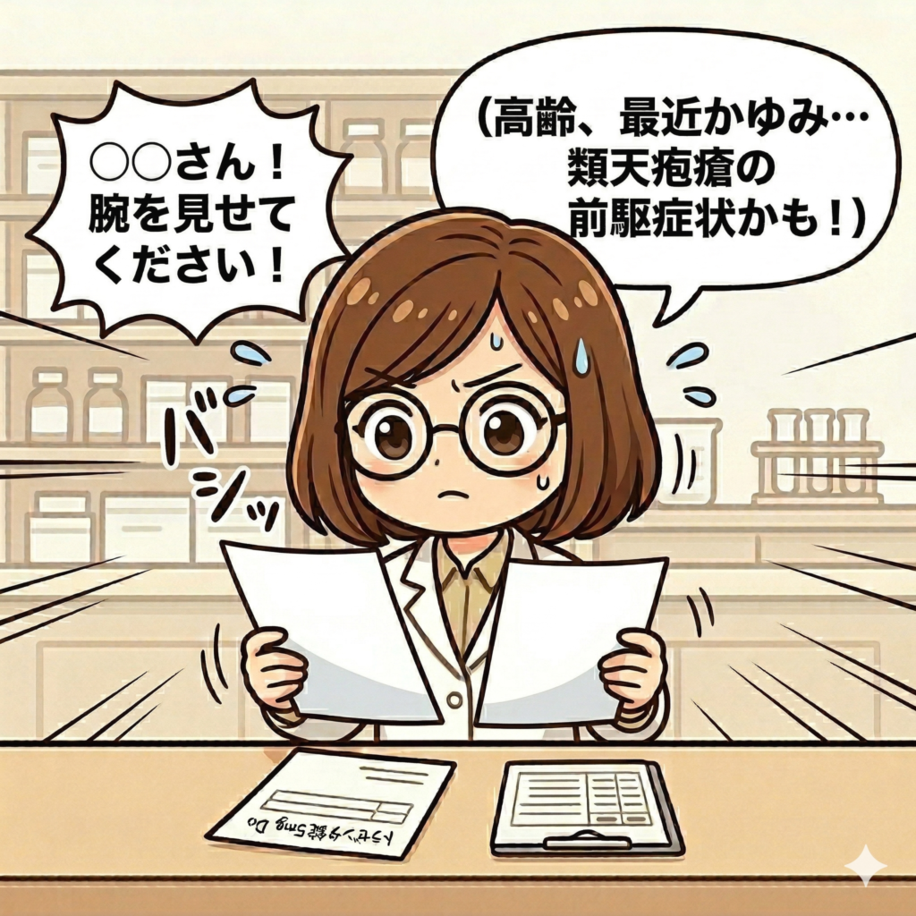 DPP4阻害薬による類天疱瘡は長期服用後でも発症リスクがあるため、患者さんの「原因不明のかゆみ」や「水疱」には常にアンテナを張っておくことが重要です。